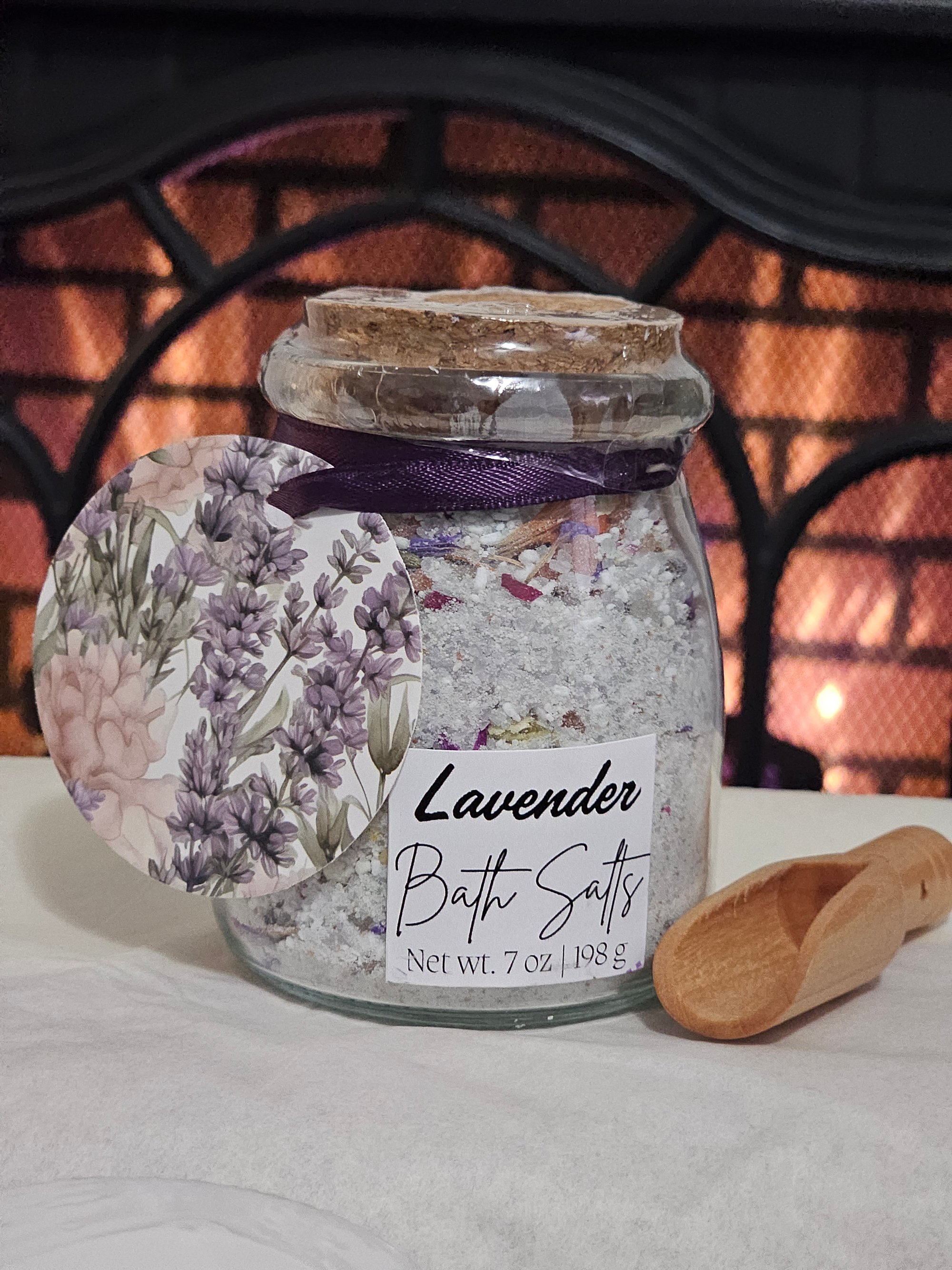 Unwind with the classic comfort of lavender. These bath salts combine natural salts with pure lavender essential oil to ease tired muscles and calm the senses. Add a spoonful to your bath for a serene, spa-inspired soak that leaves you relaxed and renewed.