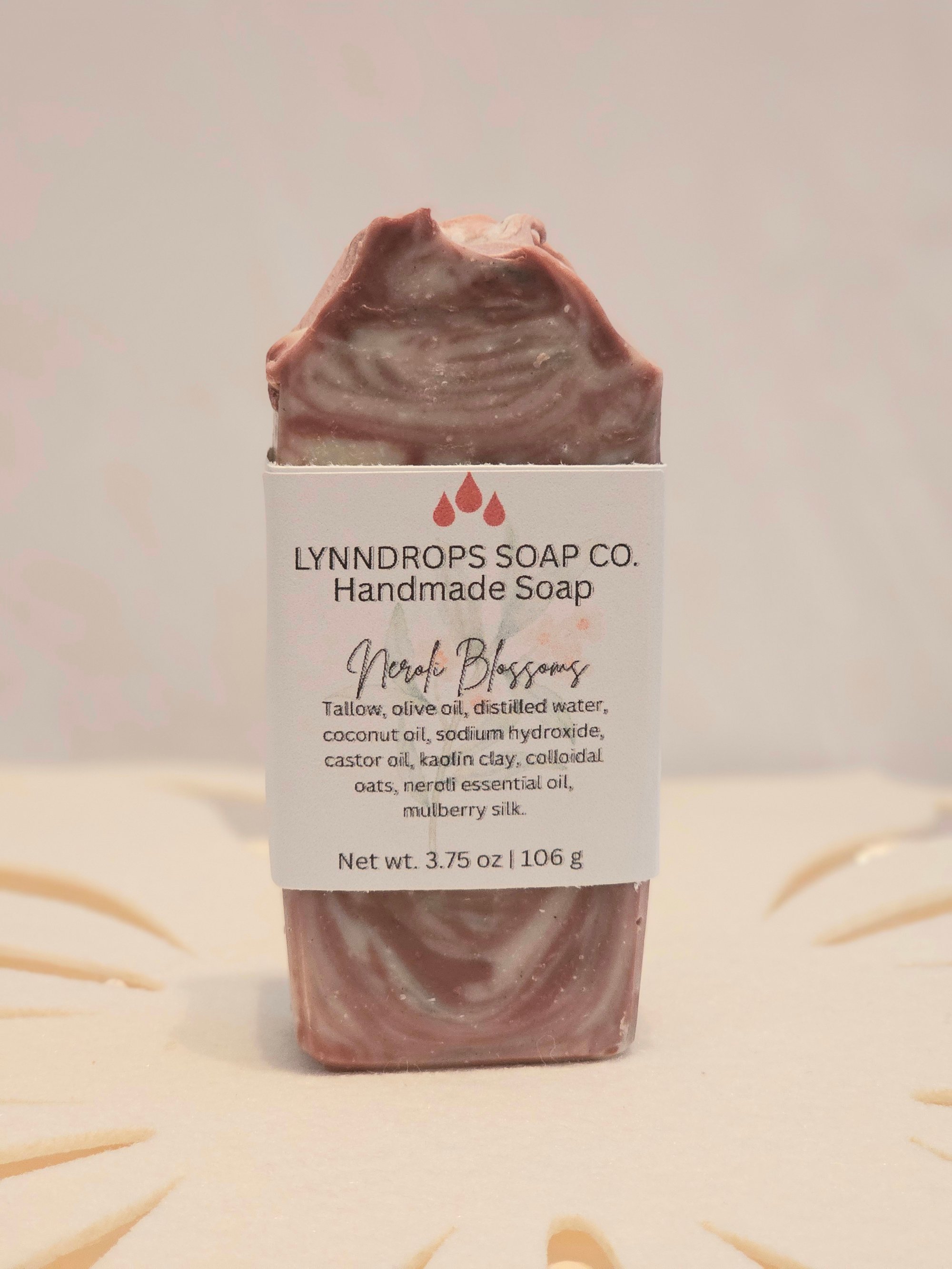 A soft, floral handmade soap scented with pure neroli essential oil. Crafted with a rich base of tallow, olive oil, coconut oil, and castor oil for a creamy, gentle lather. Fresh, lightly sweet, and beautifully calming, for everyday use.